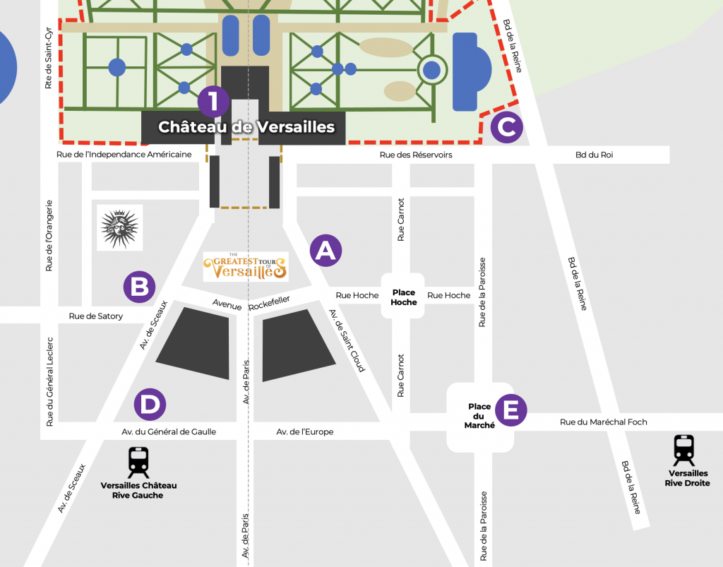 Cerca del Palacio se encuentra la Calle de Satory muy concurrida por los turistas donde encontrarás diversas opciones para comer: comida italiana, francesa, china, japonesa, kebab, etc. También los precios van desde los 8 euros por un kebab hasta los 25 euros por un platillo.