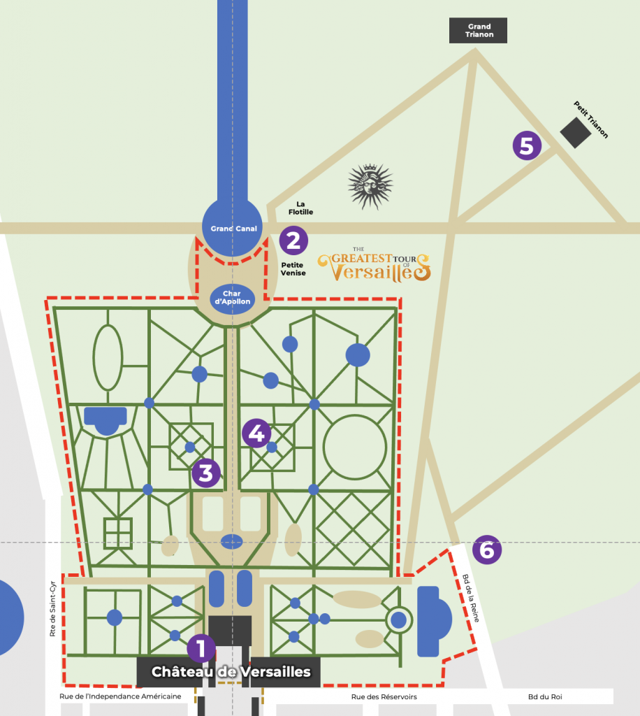 Comer en este lugar es buena opción, una vez que hayas terminado de visitar el palacio y los jardines. Puedes disfrutar de la tranquilidad del gran canal y los jardines a tu alrededor. Además si tu objetivo es visitar la Casa de María Antonieta este lugar es clave para hacer una pausa y retomar energía. Las opciones son:
